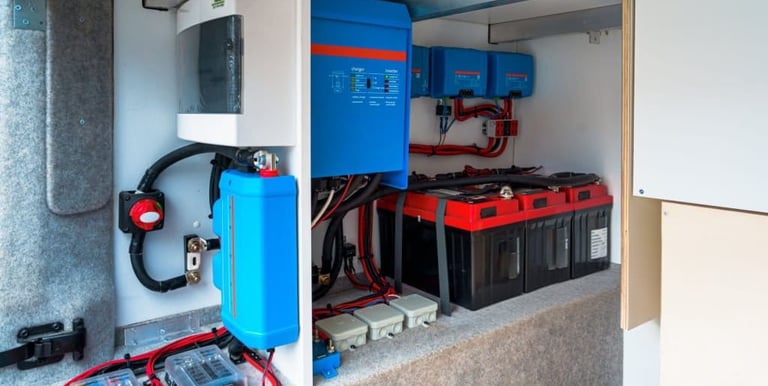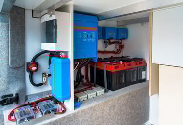 Tecnología de Vanguardia: Instalación de inversores de onda senoidal pura y bancos de baterías de Litio (LiFePO4) a 48V de larga vida útil y libre mantenimiento o en sistema de bateria de AGM/Gel de 12 V.